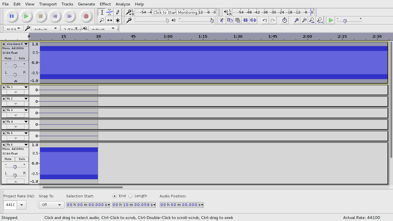(In reply to Arun Raghavan from comment #17) > Created attachment 123570 [details] > Audacity screenshot -- original vs. parec on null sink > > fwiw, playing the mp3 file you uploaded, I don't see nearly as dramatic > attenuation. Attaching a screenshot from Audacity. why only first and last channels have signal , are you using mono wav ? * The algorithm works basically like this: * * 1) Connect all channels with matching names. * * 2) Mono Handling: * S:Mono: Copy into all D:channels * D:Mono: Avg all S:channels