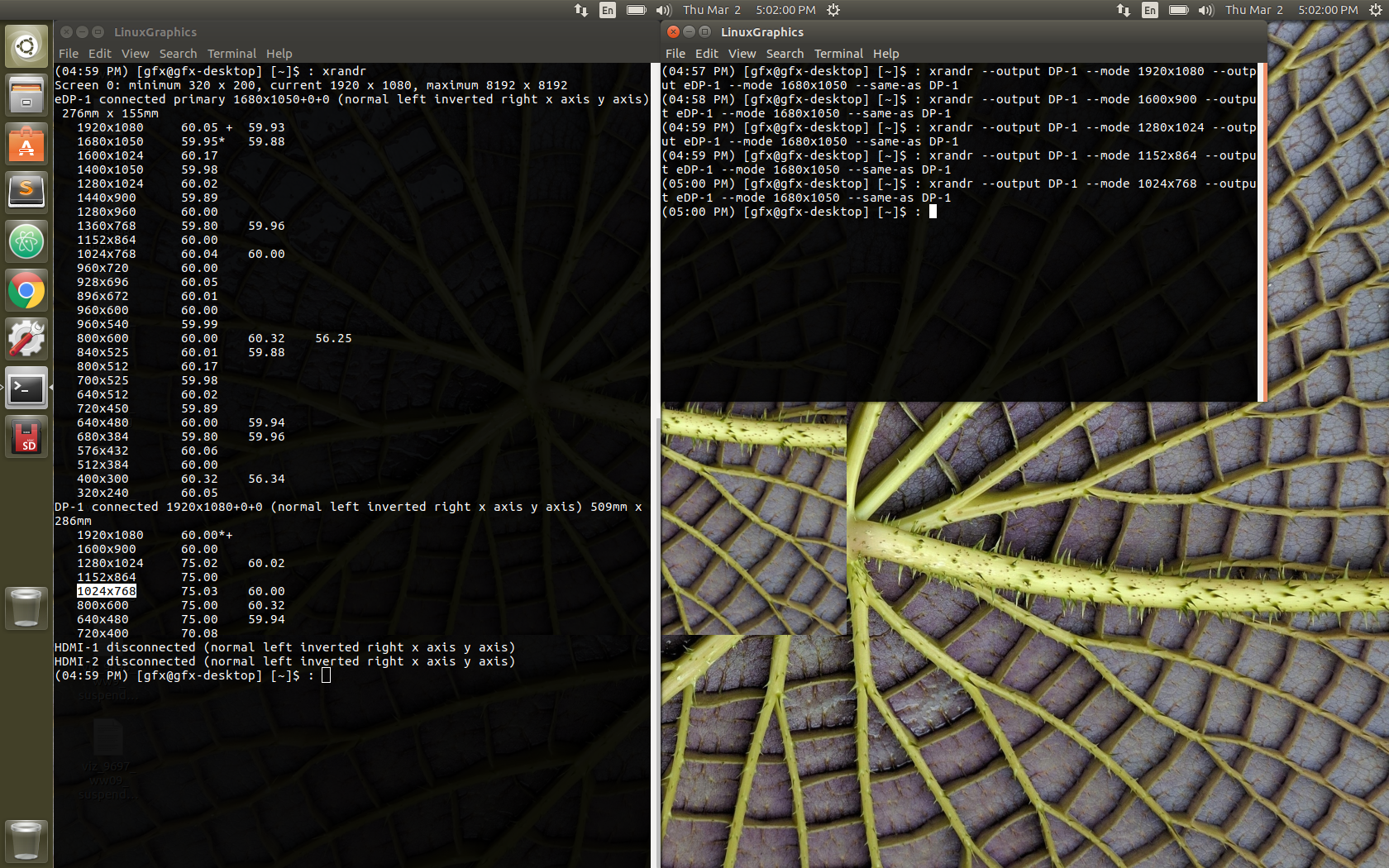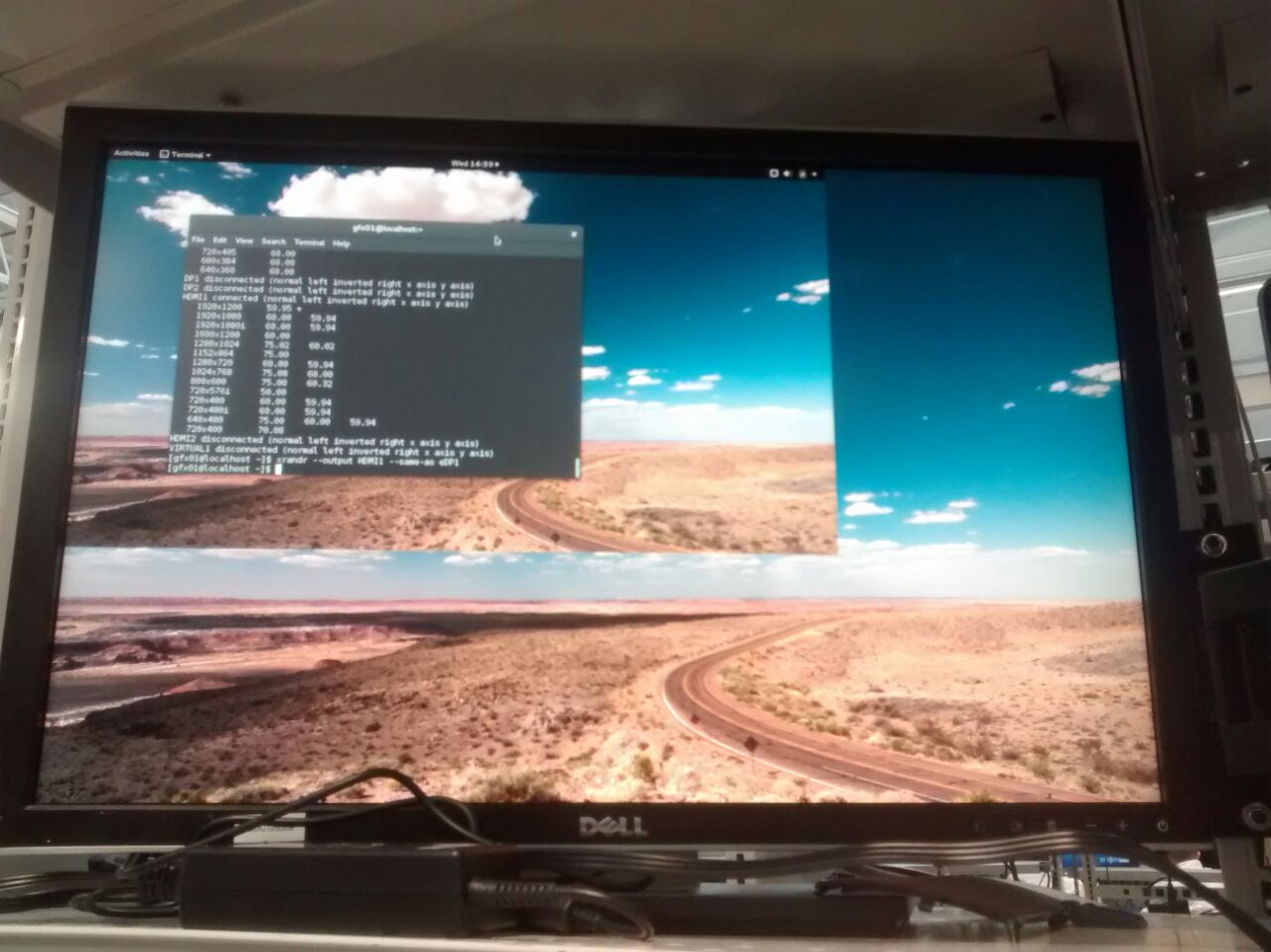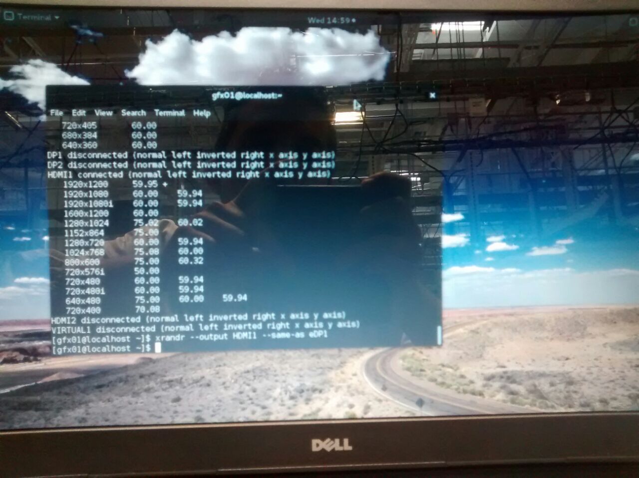 Created attachment 123509 [details] eDP screen When trying to set clone mode from terminal with eDP (13x7) and HDMI(19x10), a malfunction is seen , please see the attached pictures, and the dmesg.log Steps to reproduce: ================================================== 1. attach HDMI panel to platform 2. Set any mode except clone mode 3. Set max resolution on both eDP and HDMI 4. open a terminal: xrandr --output HDMI1 --same-as eDP1 Expected results: ================================================== Both outpput screens should be the same. Actual Result: ================================================== A malfunction of clone mode is observed when it is set. HW Configuration +================================================ product: Inspiron 15-3552 (06AC) description: Motherboard product: 0T14MC Family: Braswell version: A00 version: Intel(R) Pentium(R) CPU N3700 @ 1.60GHz SW Configuration ================================================== kernel: 4.2.3-300.fc23.x86_64 mesa: mesa-11.0.3-1.20151012.fc23.x86_64 cairo: 1.14.2-2.fc23.x86_64 libdrm: 2.4.65-1.fc23.x86_64 xorg: 7.5-20.fc23.x86_64