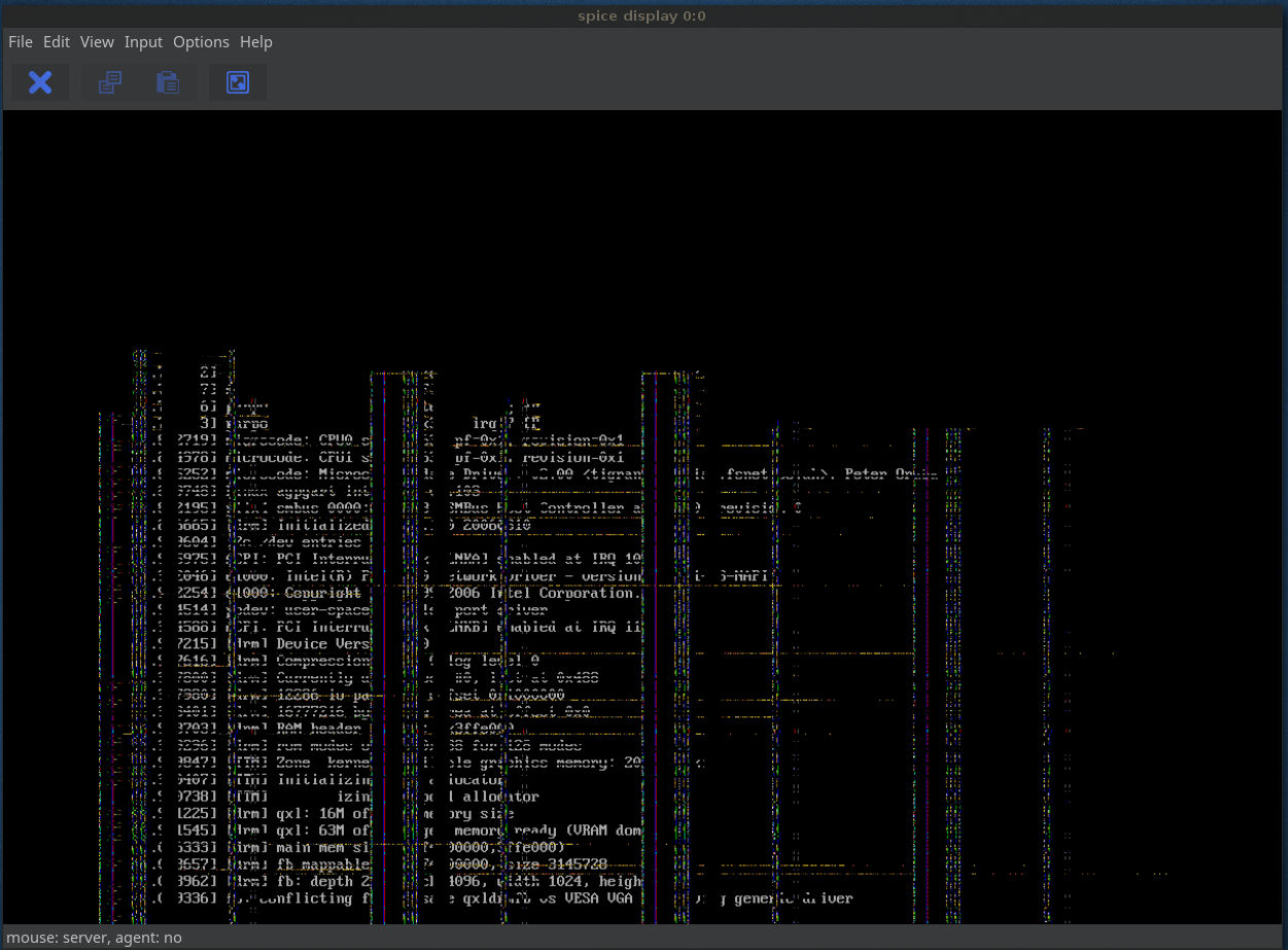 Spice support for a Slackware guest is not good. I knocked myself out for several days, trying everything possible I could find online, nothing works... The system is not useable... Also when logging out of X to the console, it locks up at the console and the screen goes bad, so then you can't do anything in the console, there is no console, you have to shutdown then restart qemu. Someone that really has a care/concern for improving Guest support for Slackware guest should trying installing Slackware 14.2 and testing it out, because it doesn't work for me.