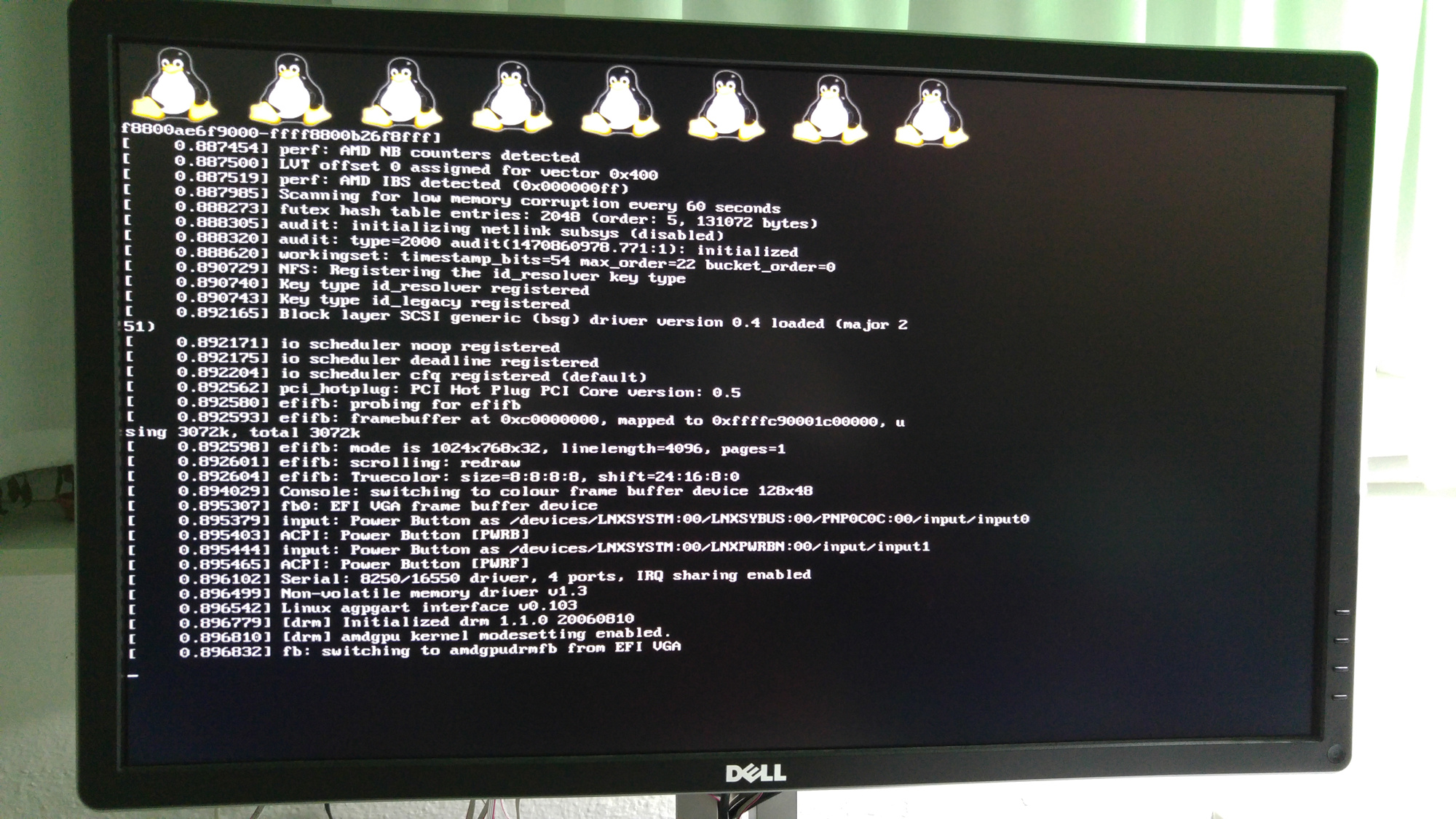 Created attachment 125687 [details] Won't boot OK, thank you, got it compiled! But: First, mkinitcpio was telling me: ==> ERROR: module not found: `crc32c' ==> Generating module dependencies ==> Creating xz-compressed initcpio image: /boot/initramfs-4.6-amd-staging.img ==> WARNING: errors were encountered during the build. The image may not be complete. And now the kernel won't boot. See the photo in the attachment. I see eight Tuxes and and a couple lines output but it won't go further. :/
