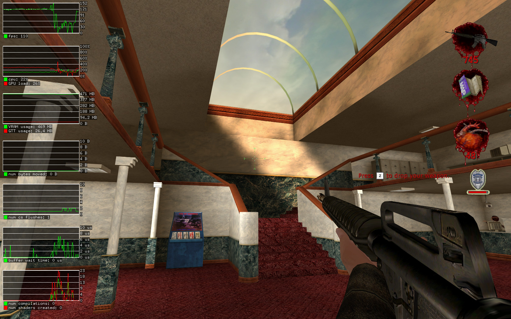 I have a Radeon R7 370 and running Mesa 12.0.1, I get horrible performance in certain areas or events of POSTAL 2, to the point where the game is almost unplayable. This issue is easiest to reproduce on the level with the bank. Approaching the bank causes the framerate to get lower and lower, and entering it causes the game to immediately freeze for several seconds. If you rob the bank, the resulting firefight will cause the game to freeze repeatedly. Using the exact same hardware, I've played the game using fglrx with much better performance. Help would be much appreciated.