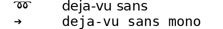 Created attachment 126817 [details] Seen from LibreOffice Version as reported by pacman: 2.35-1. The character “DOUBLE CURLY LOOP (U+27BF)” is not rendered correctly with DejaVu Sans Mono. I see a character similar to a rightwards arrow. Attached is what I see in LibreOffice. There's also that website that shows the same problem: http://www.fontspace.com/unicode/char/27BF-double-curly-loop