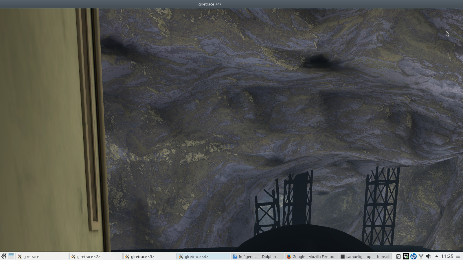 Ok, I managed to download the trace with Konqueror. I haven't tried it with fglrx yet, but I compared the attached screenshot with the YouTube video, and here are my thoughts. Actually, the mud is rendered correctly, the problem is with the rocky walls of the cavern. It looks like the lighting is fullbright, and the fog is missing. I also read the shader in qapitrace, and I have no idea how it was supposed to add fog (I'm not an expert on GLSL though). If you look at the middle of the attached screenshot, you can see some little black objects in the background. Those are also missing fog. It seems this bug has been reported to Valve as https://github.com/ValveSoftware/steam-for-linux/issues/4414 , and it's not specific to Mesa.