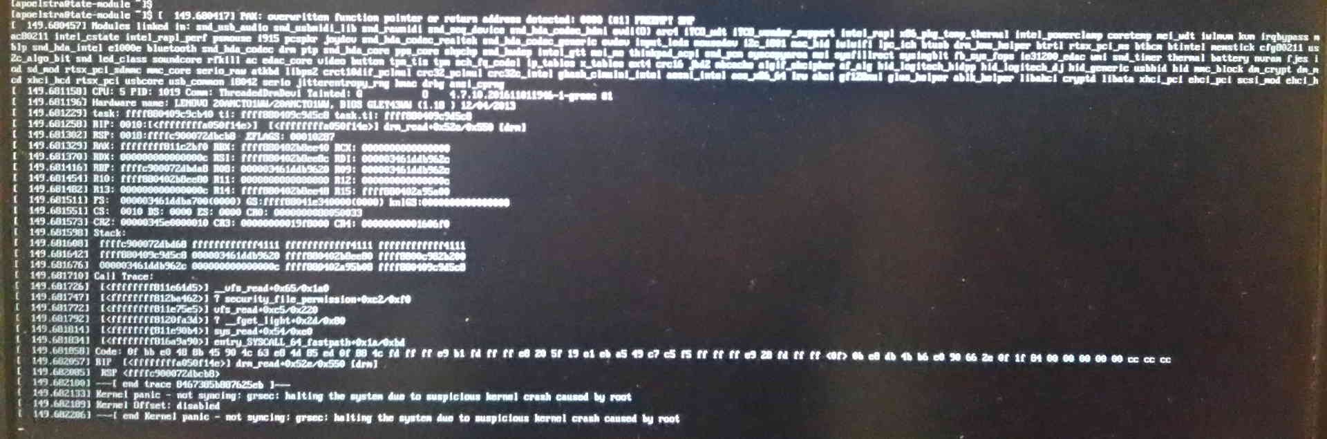 (In reply to Emil Velikov from comment #3) > The following libdrm commit should fix it. Please apply it locally and let > me know if it works. > > commit 677cd97dc4a930af508388713f5016baf664ed18 > Author: Rob Herring <robh@kernel.org> > Date: Fri Oct 21 10:07:59 2016 -0700 > > Return an -ENODEV from drmGetDevice() when no device was found. > > https://cgit.freedesktop.org/mesa/drm/commit/ > ?id=677cd97dc4a930af508388713f5016baf664ed18 > > Btw you can fetch the patch alone or just rebuild libdrm/master. > > There is another pending fix in the drmDevice area, so as soon as we get a > confirmation [from a few devs], I'll see that we get another libdrm release. I also see this bug, my hardware is a UGA-4KDP DisplayLink HDMI device branded "pluggable". With Rob's patch, if X is running and I plug in the device (or if I plug it in then start X), my kernel panics with "PAX: overwritten function pointer or return address detected: 0000 [01] PREEMPT SMP". (Actually this might not be the panic -- several lines down grsec says "Halting the system due to suspicous kernel crash caused by root" so possibly with a non-grsec kernel it would keep running. I'd prefer not to try :))