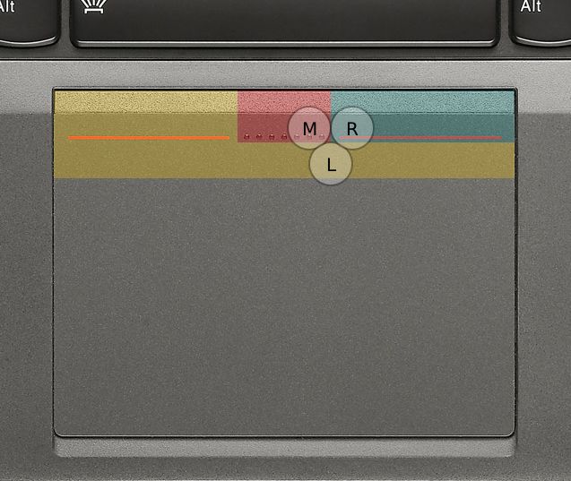 Hey Peter, the image is a drawing. The actual border between middle and right button is nearby but not exactly at that position. It took some time to fiddle with the button area settings to make it fit my fingers exactly. Regarding the patch - my thumb rests on middle button position normally. As soon as I move it down into the touchpad area (while not lifting it, so in fact it is sliding over the surface) and do a click there it is still recognized as middle mouse click. Best Markus